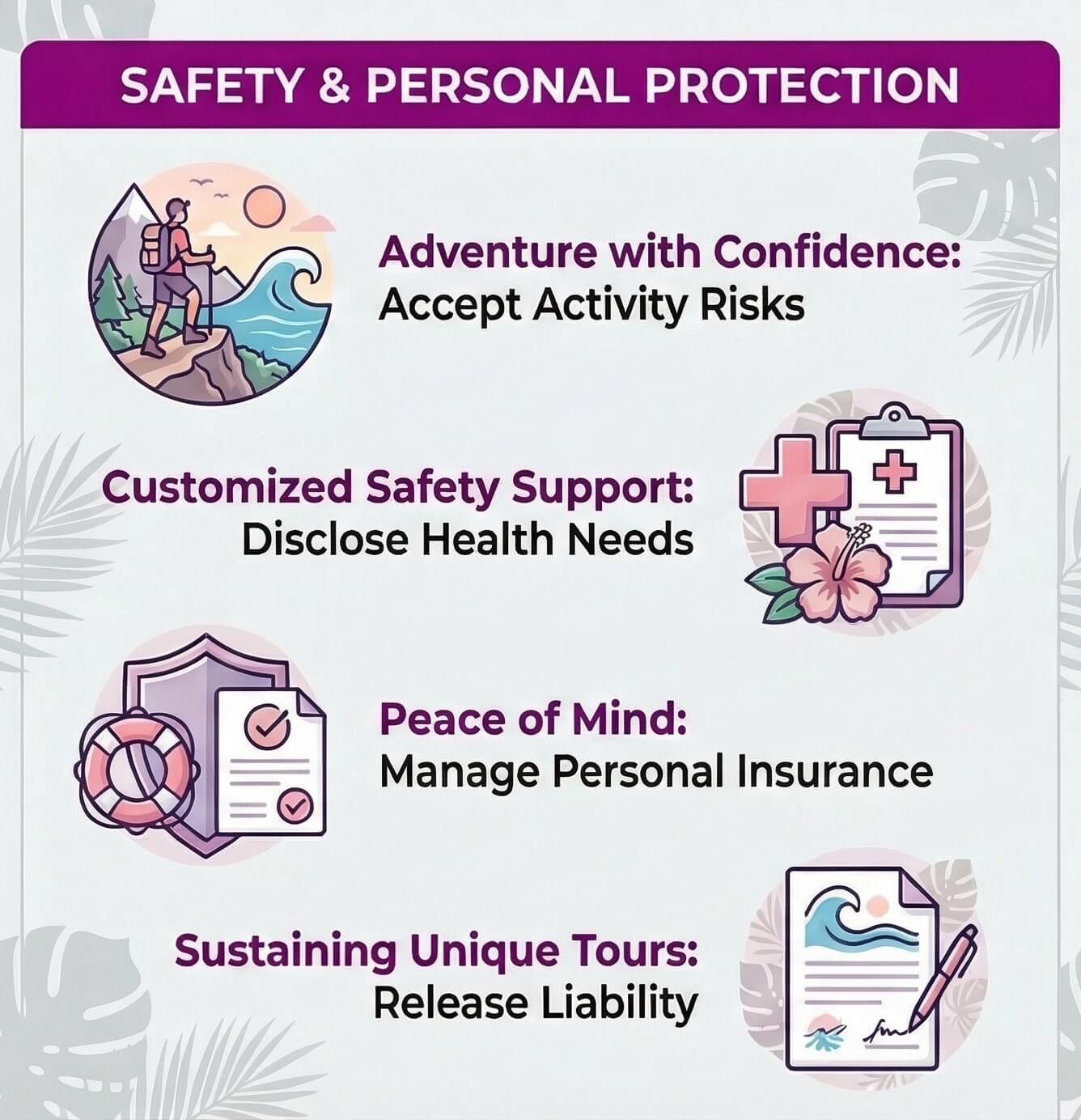 Being prepared with insurance and guidance from our team ensures peace of mind while exploring Hawaii safely.